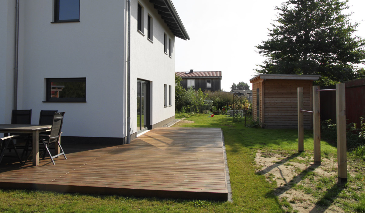 Bei diesem Bauvorhaben wurden wir mit der Umsetzung der Grundstückszufahrt und Terrassenlandschaft beauftragt. In diesem Rahmen waren wir sowohl für die vorbereitenden Erd-, als auch die anschließenden Pflasterarbeiten für die Zufahrt mit zwei Stellplätzen aus Naturstein und Wege inklusive Traufsteifen zuständig. Auch die fachgerechte Entwässerung der Anlagen gehörte bei dieser Umsetzung zu unserem Aufgabenbereich.