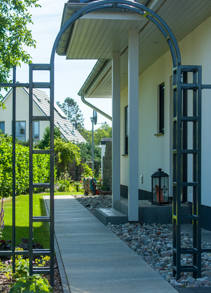 Abgekämpft und ratlos nach einer langen, anstrengenden Planungsphase wandten sich die Bauherren an uns. Das Bauunternehmen Hahn GmbH hatte bereits die Erdarbeiten, den Rohrleitungsbau sowie die Bodenplatte zur Zufriedenheit fertiggestellt, nun planten wir gemeinsam die äußere Gestaltung. Schon bald trat wieder ein Lächeln in das Gesicht unserer Auftraggeber. Ab jetzt genießen Sie das sehenswerte Ergebnis.