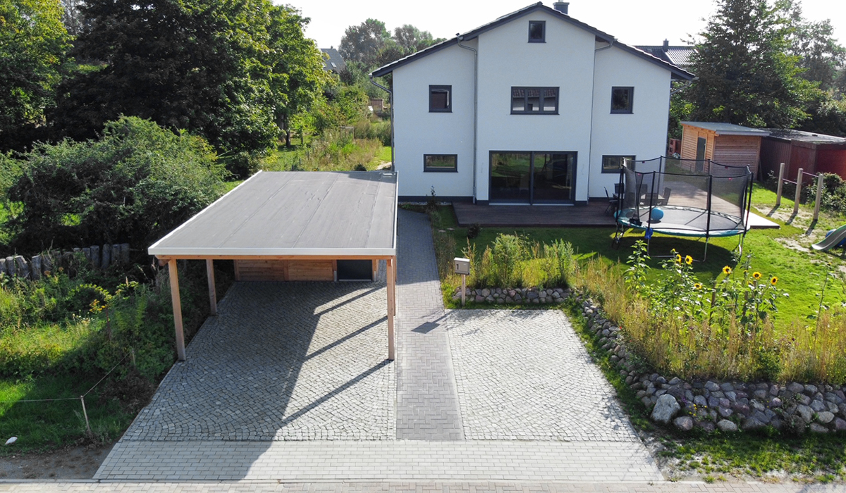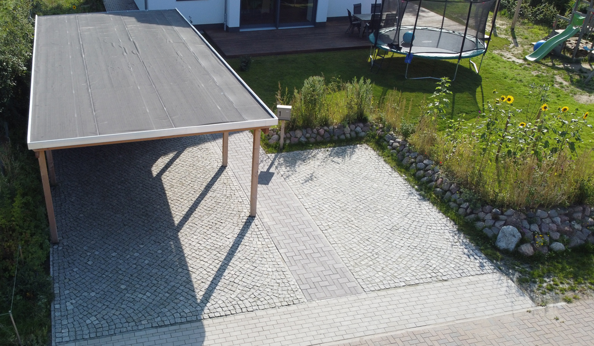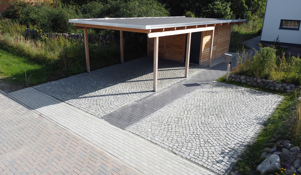 - Pflasterarbeiten für Wege inkl. Traufstreifen, Terrasse, Zufahrt und Stellplatz