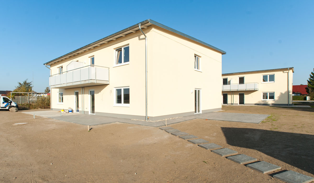 In ruhiger Stadtrand-Lage entstanden in der Loitzer Landstraße zwei Mehrfamilienhäuser die fast bezugsfertig auf Ihre Mieter warten. Damit es gemütlich wird, muss jetzt nur noch der Rasen wachsen.