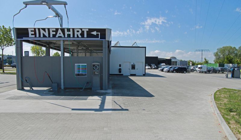 In diesem Bauvorhaben wurden wir mit dem Bau einer neuen Waschanlage beauftragt. Nach dem Abbruch von Hindernissen im Erdbereich, haben wir im Zuge der Erdarbeiten den Boden für Regenrückhaltebecken und die Gründung der Waschanlage ausgehoben, sowie Kabeltrasse und Schachtgruben angelegt. Neben Abwasser- und Regenleitungen waren wir für den Einbau von Regenwasserrückhaltung, Portalwaschanlage, Frostschutzschacht, Abscheideranlage und Schachtbauwerk verantwortlich. Für den Mitarbeiterparklplatz haben wir eine Schotterfläche mit Randeinfassungen und Rasengitter angelegt.