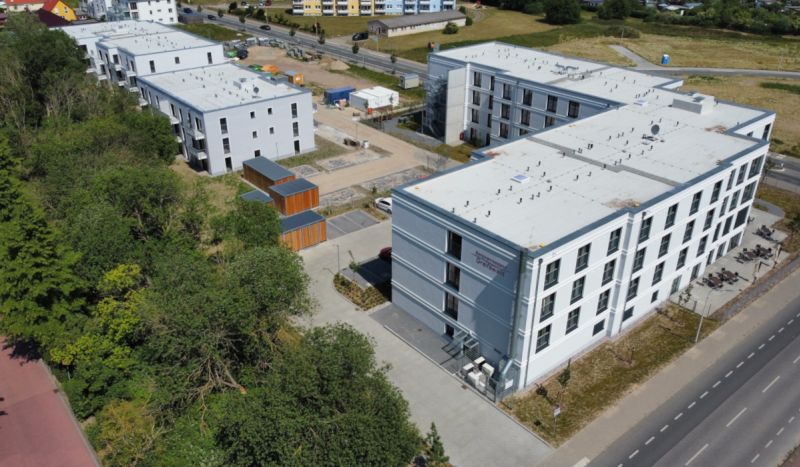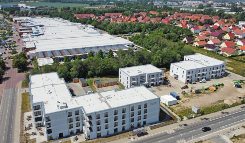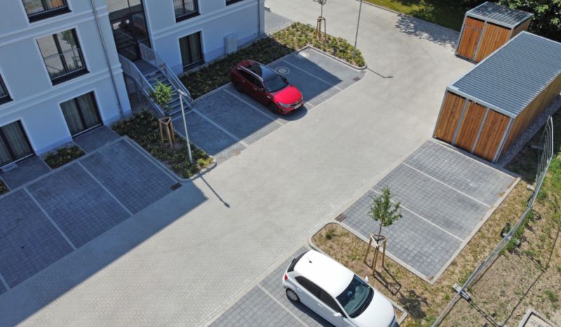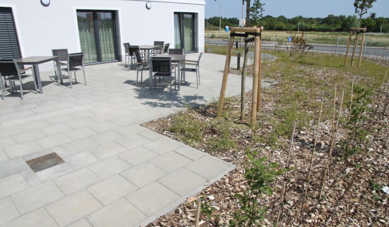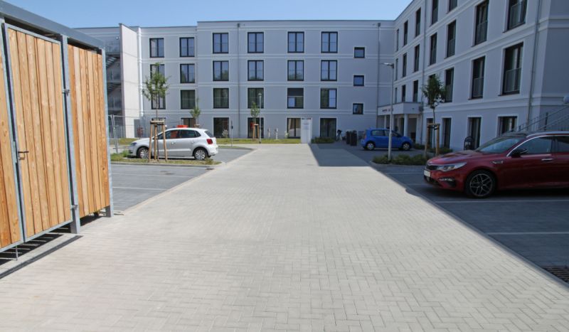 Im Zuge des Neubaus der Seniorenresidenz Greifswald wurden wir von Schneider Systembau mit den vorbereitenden Erdarbeiten, der Entwässerung, sowie Pflaster-, Boden- und Bepflanzungsarbeiten beauftragt. In diesem Rahmen haben wir Park- und Fahrflächen, Gehwege, sowie einen Terassenbereich angelegt.